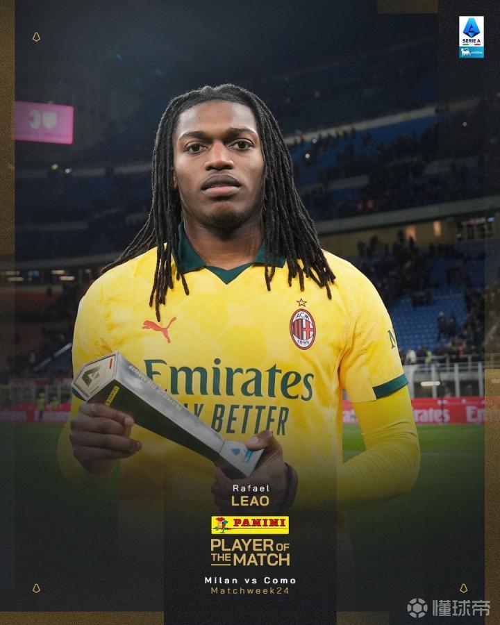 官方消息,莱奥当选米兰对阵科莫一役全场最佳。